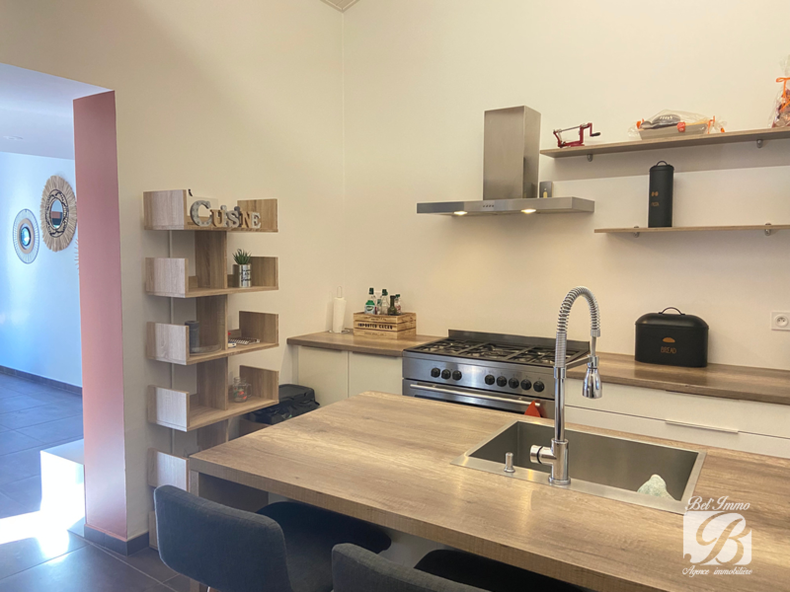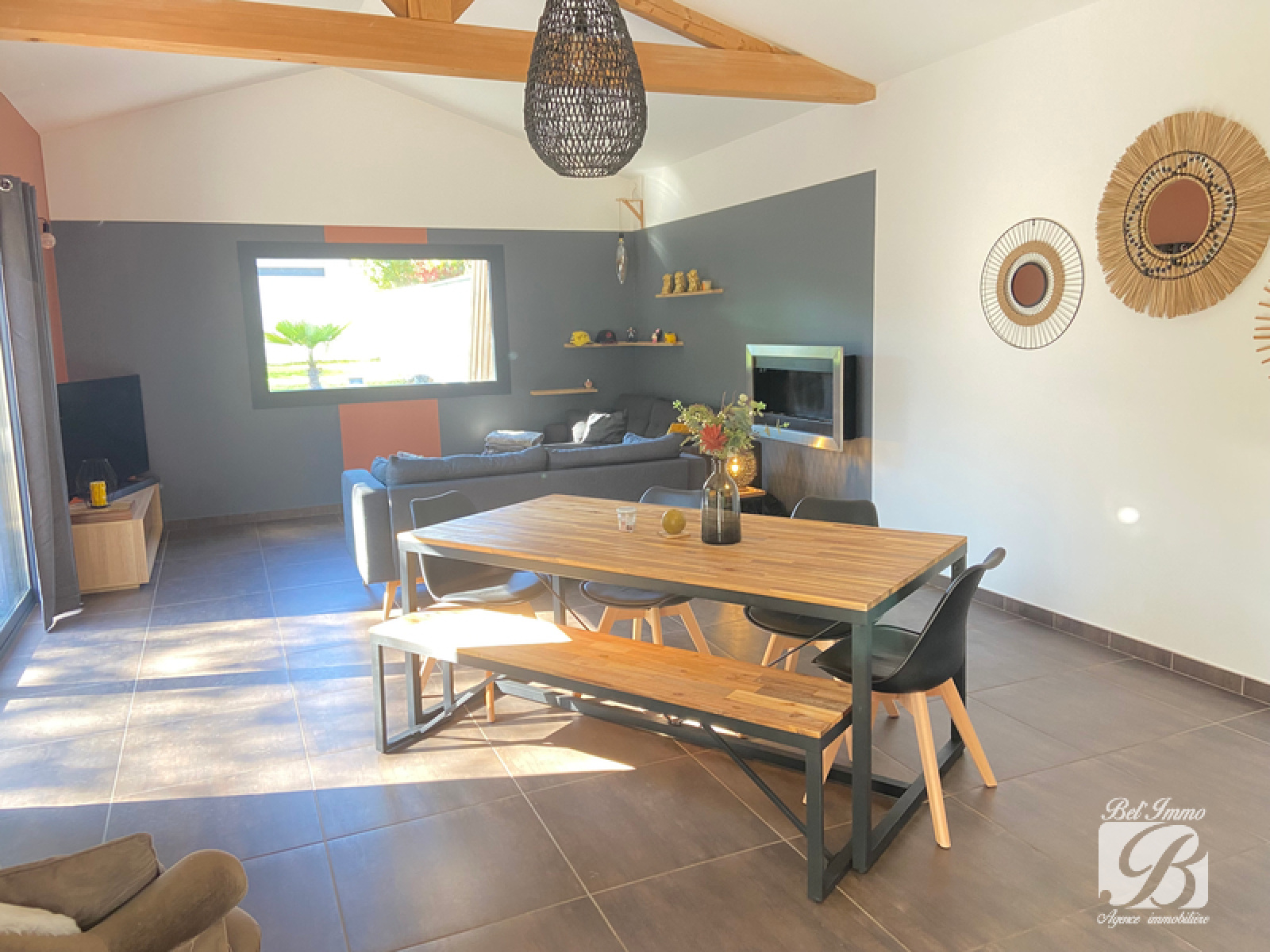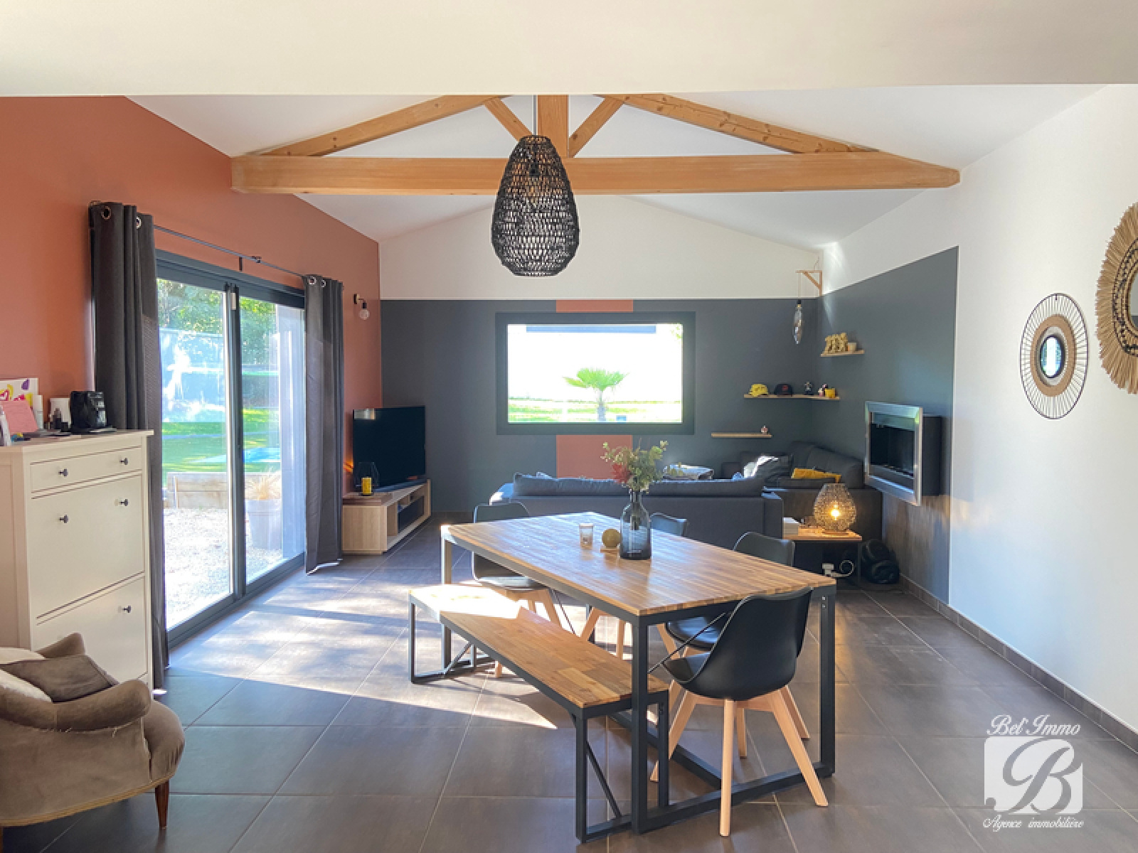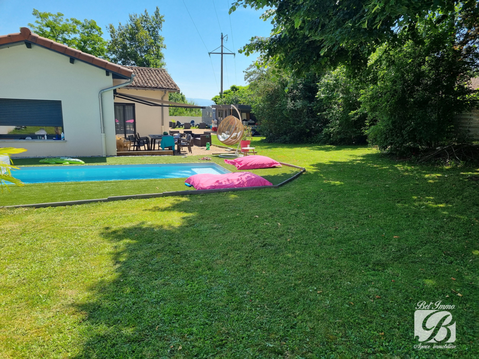 Béligneux village, dans un cadre idéal, au calme, belles prestations pour cette jolie maison de plain pied, de 90.60 m² habitables environ comprenant une grande pièce de vie lumineuse, un coin bureau, une cuisine équipée et meublée, un dégagement desservant une salle de bains, 2 wc, 1 chambre parentale avec dressing et mezzanine de rangement, une autre chambre avec une grande mezzanine avec un coin nuit et un bureau faisant office de petite chambre également agrémentée d'une mezzanine. Cette maison atypique est complétée d'une belle piscine chauffée, un chalet, un abri de jardin, un carport, et un portail motorisé, très belle parcelle de 1097 m² arborée. 429 000€ Frais d’agence inclus. Honoraires à la charge des vendeurs. Agence BEL'IMMO 04.72.25.91.18 Visite virtuelle sur demande.