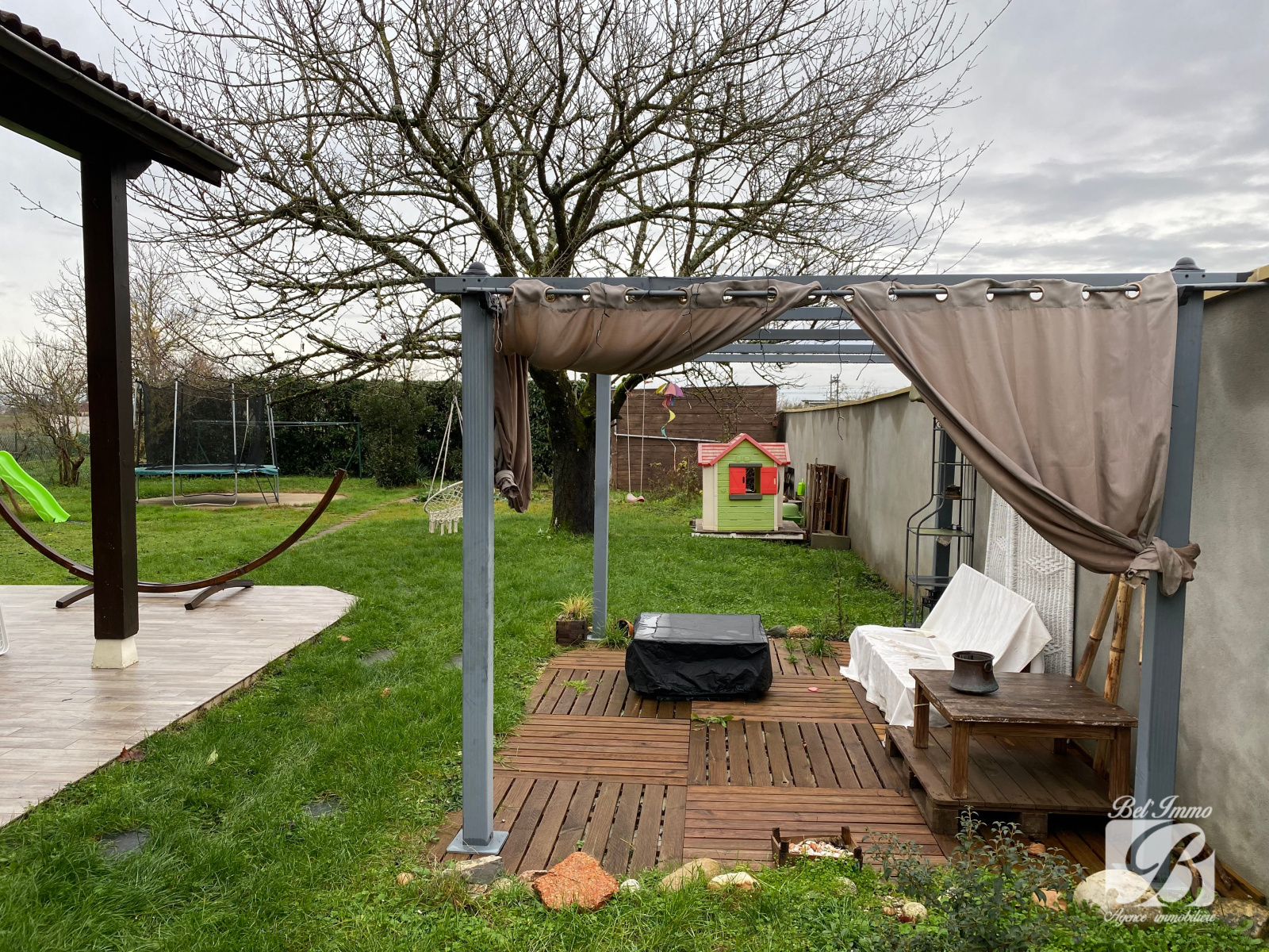 Vous trouverez également un garage en partie aménagé composé d’un atelier et d’un coin buanderie (plus de possibilité de rentrer un véhicule). Grande terrasse carrelée et chalet sur une belle parcelle close de 1000 m² environ.
