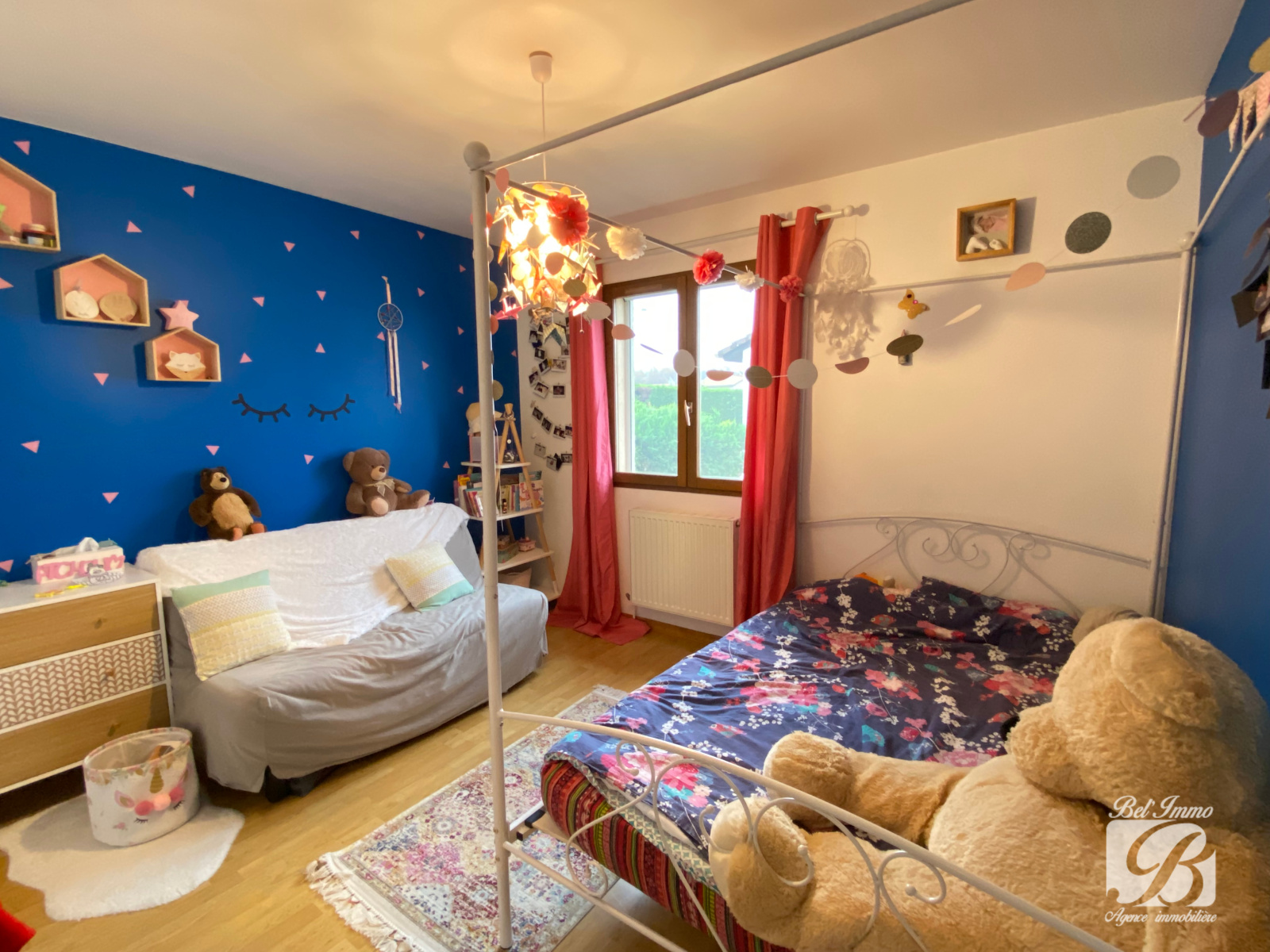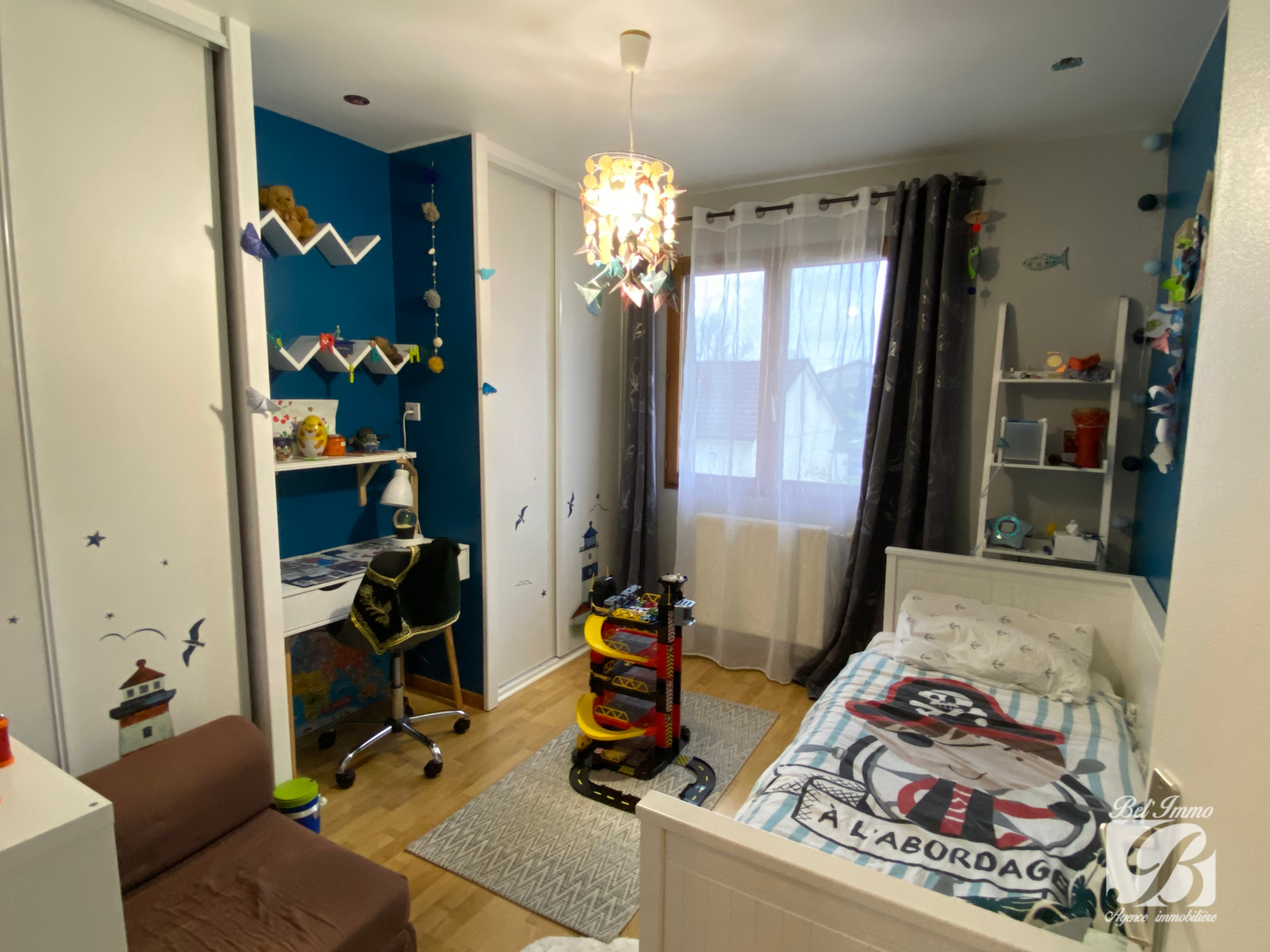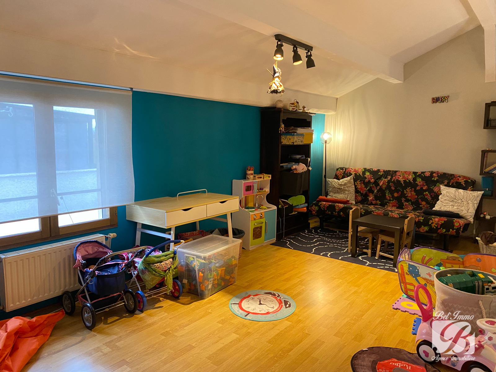 A l’étage, une grande mezzanine faisant actuellement office de salle de jeux, mais possibilité d’en faire une cinquième chambre, un deuxième dégagement desservant 3 chambres, une salle de bains avec baignoire et douche et un wc séparé.