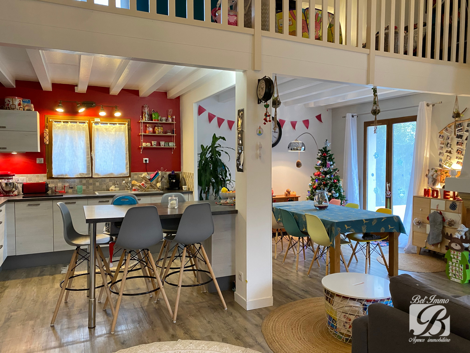 Béligneux, proche des commodités, belle maison de 125 m² environ comprenant en rez de chaussée une belle pièce de vie lumineuse de 50 m² environ avec cuisine équipée ouverte sur le séjour, salon, un dégagement desservant une chambre parentale, une salle de douche avec un wc.