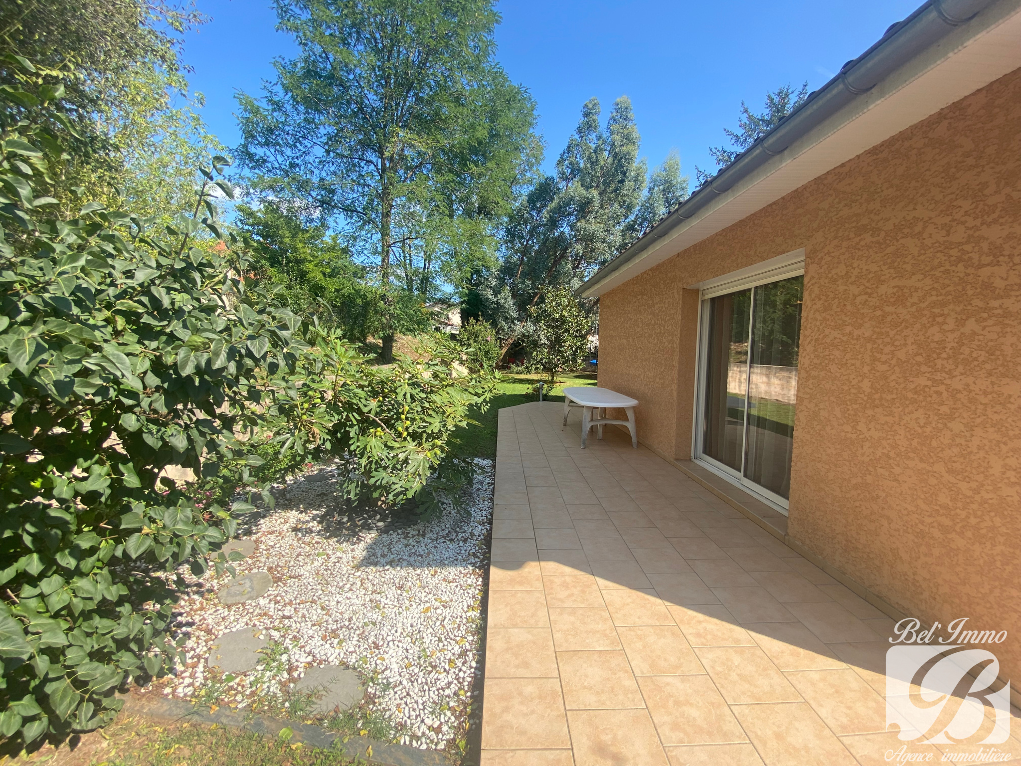 Côté jardin, vous profiterez d'une grande terrasse carrelée tout autour de la pièce de vie et de la cuisine et d'une très belle parcelle de 910 m².