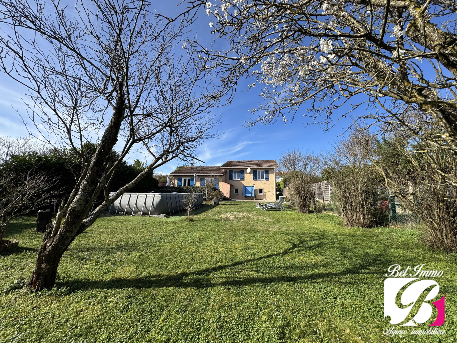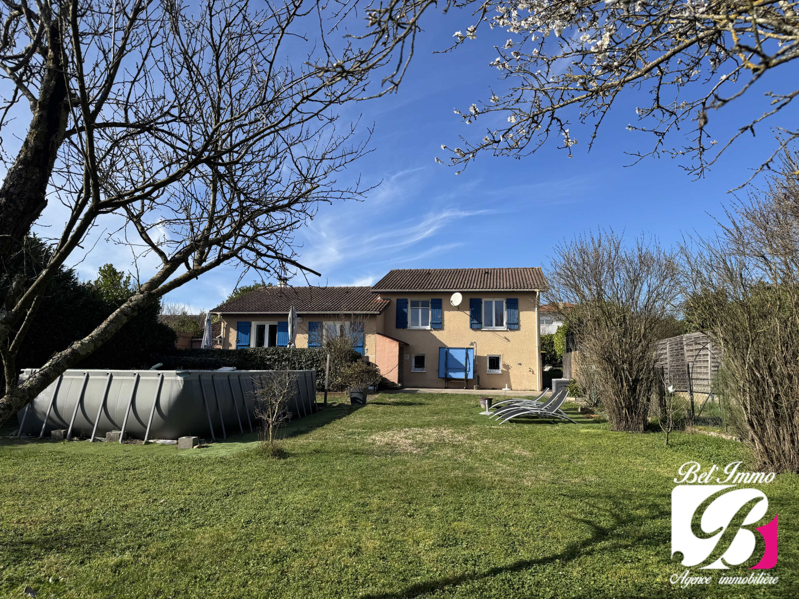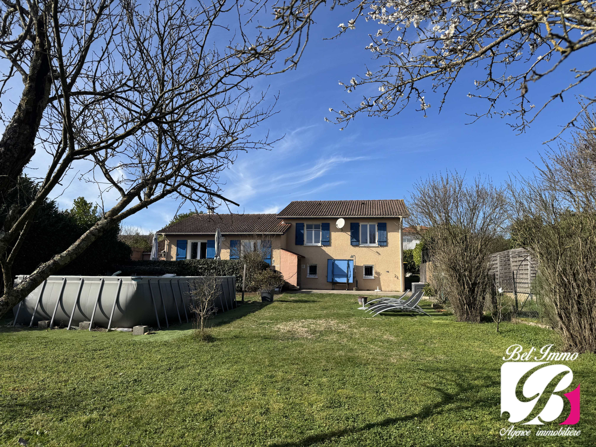 Elle est implantée sur une belle parcelle de 1060 m², entièrement close, avec 2 terrasses et une piscine hors-sol.