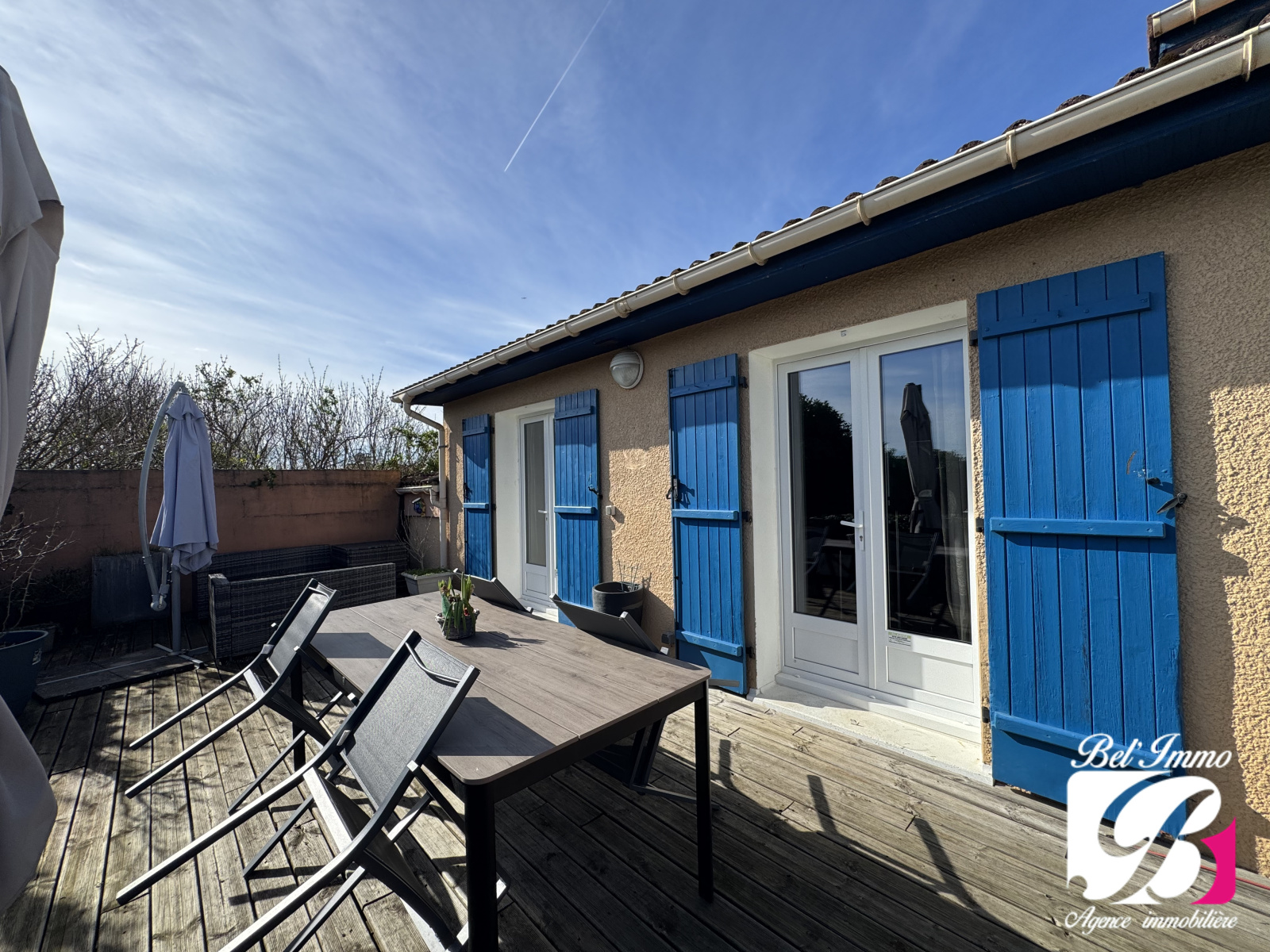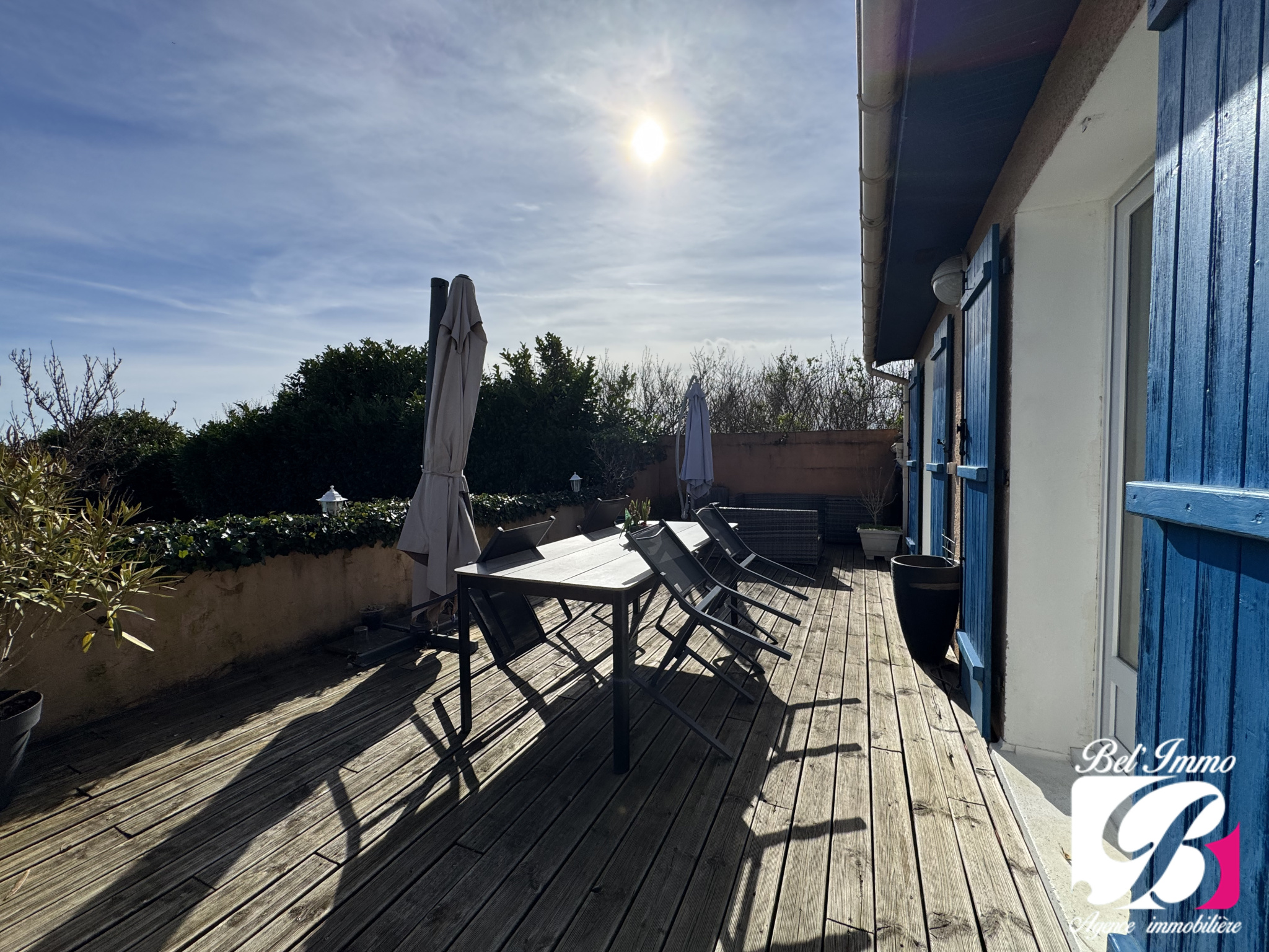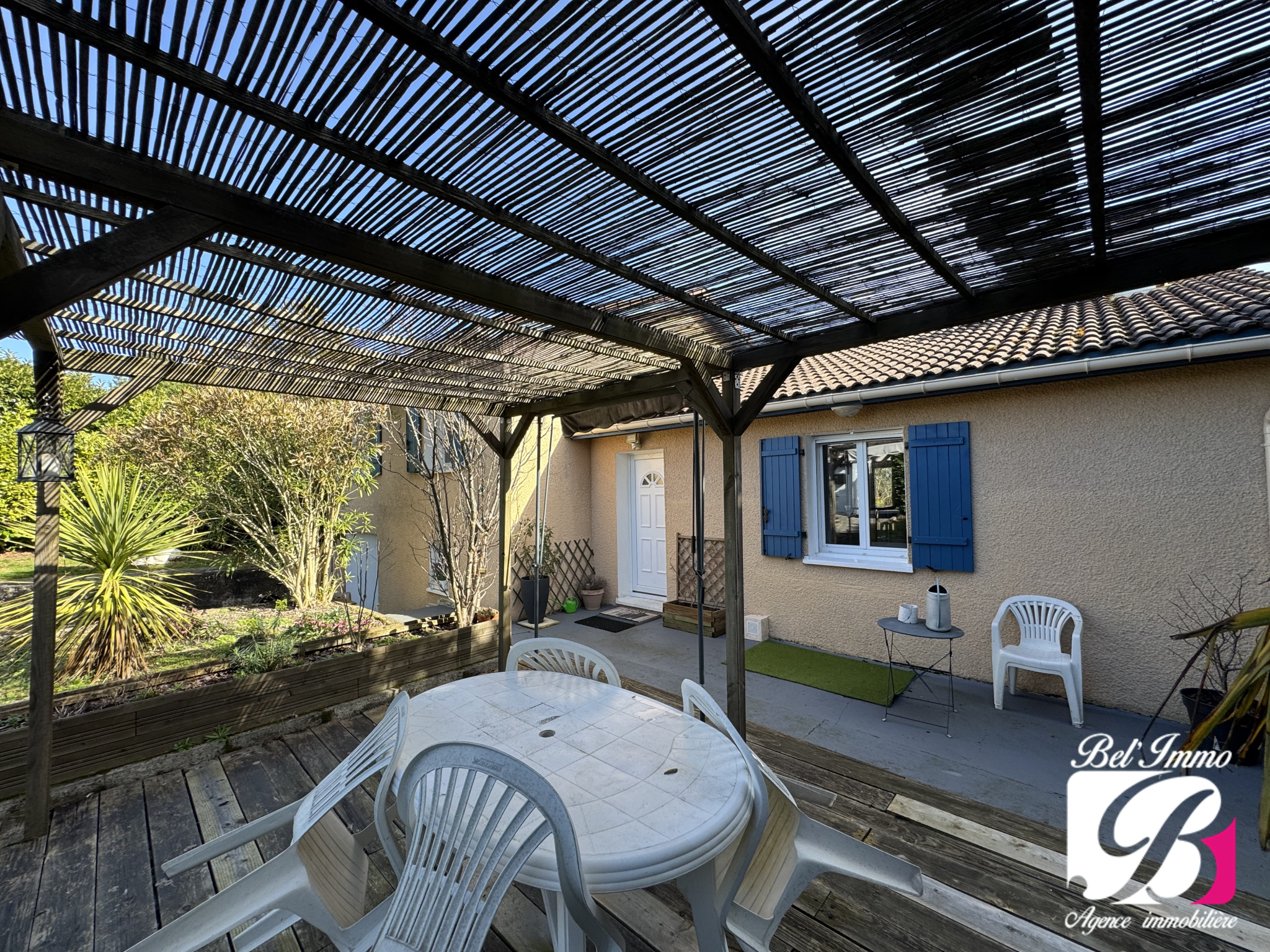 Elle est implantée sur une belle parcelle de 1060 m², entièrement close, avec 2 terrasses et une piscine hors-sol.