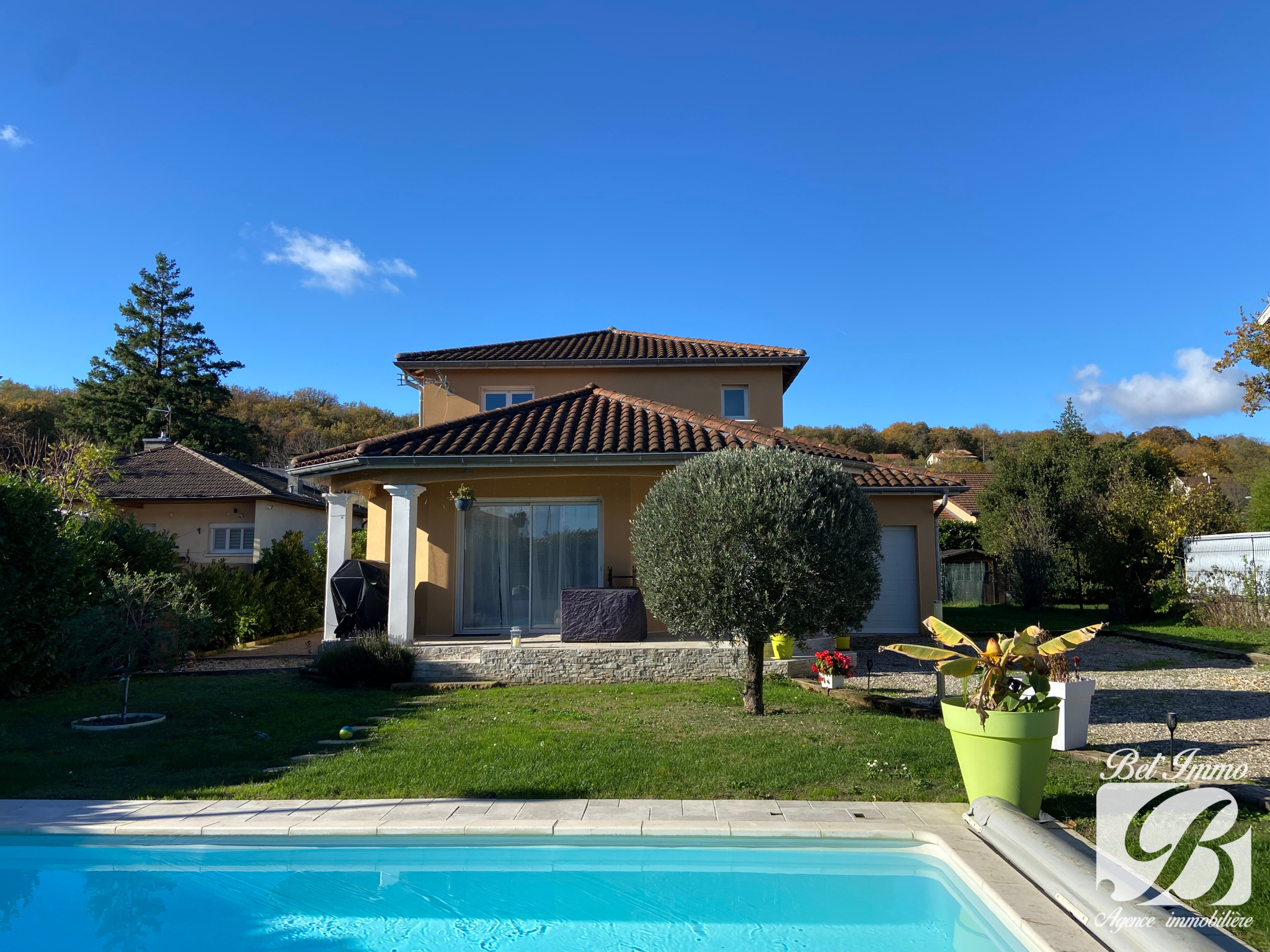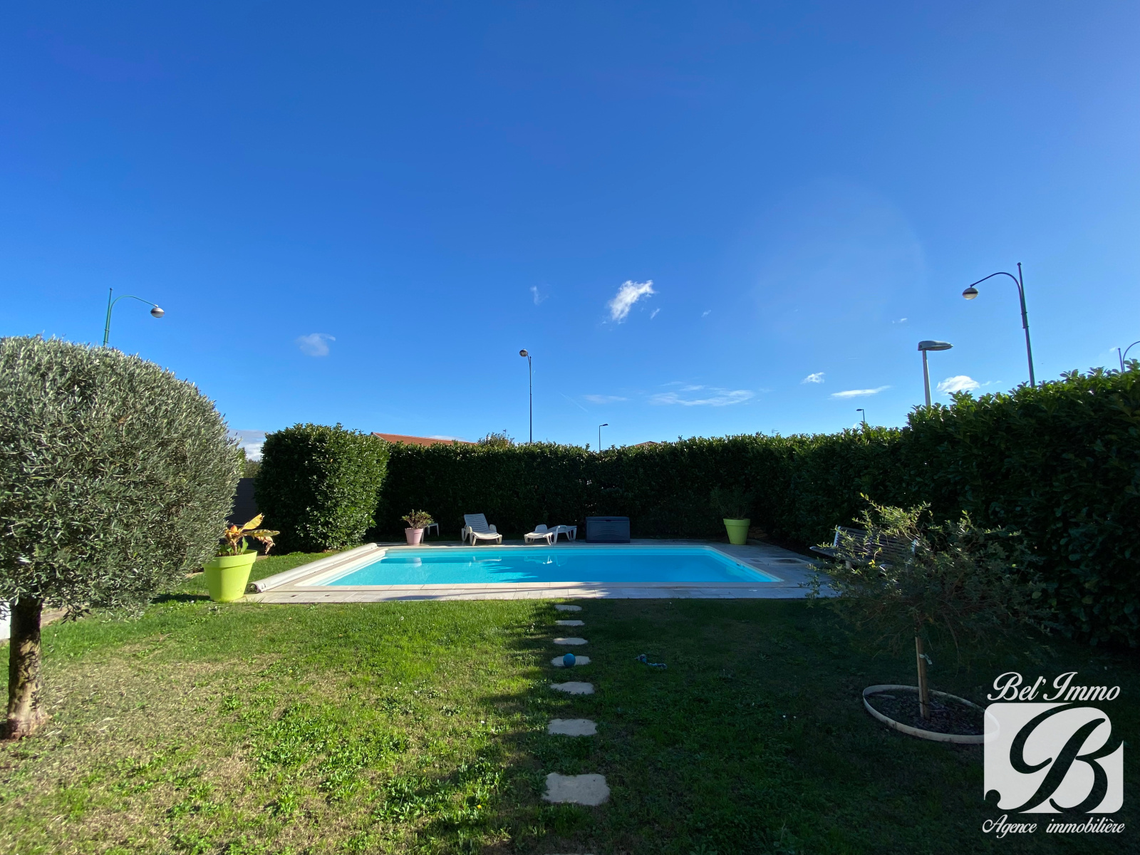 Ce bien est complété par une terrasse nord ouest et une terrasse abritée côté sud donnant sur la piscine, un garage, un chalet de jardin, un terrain de pétanque.