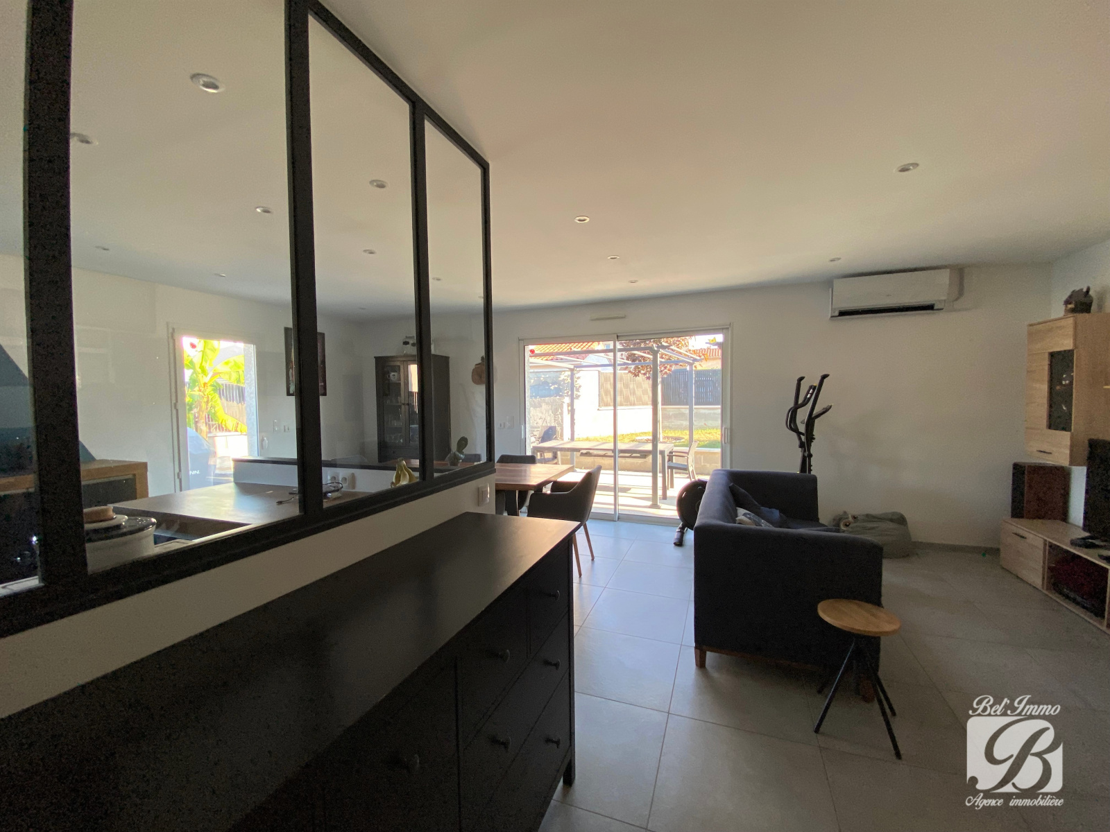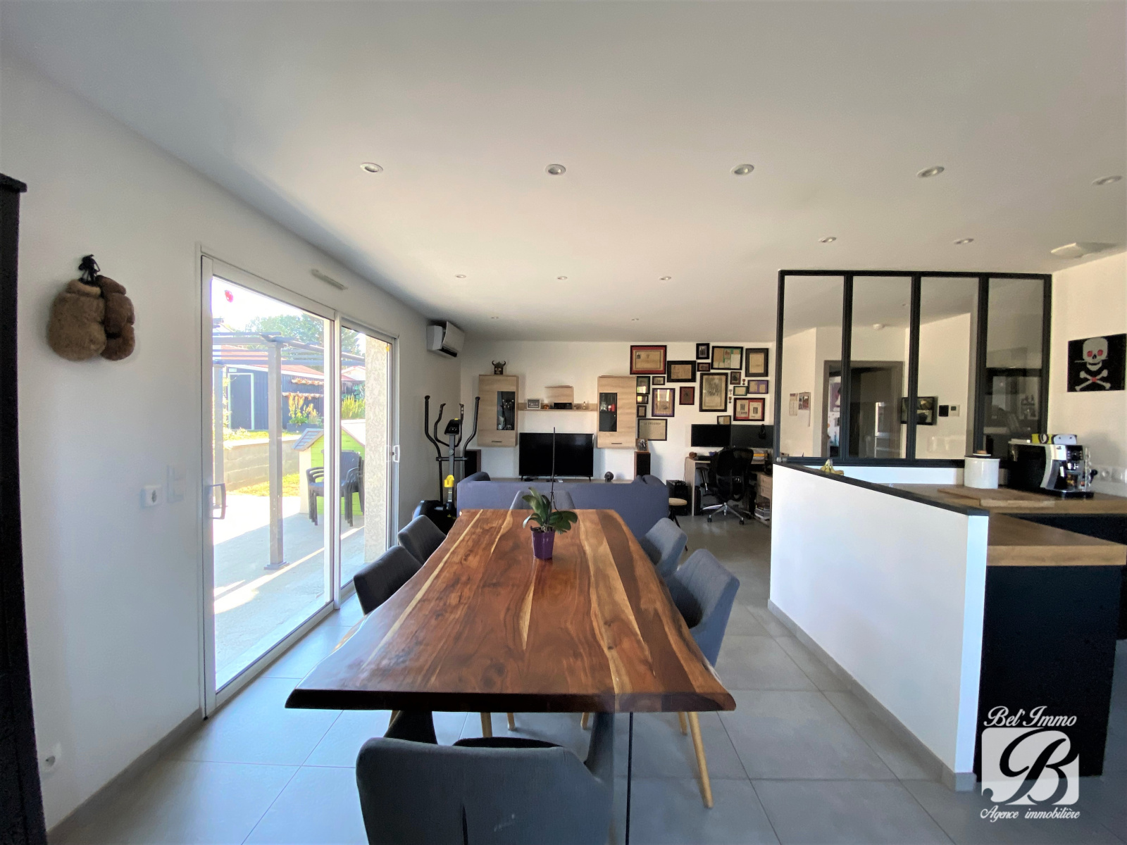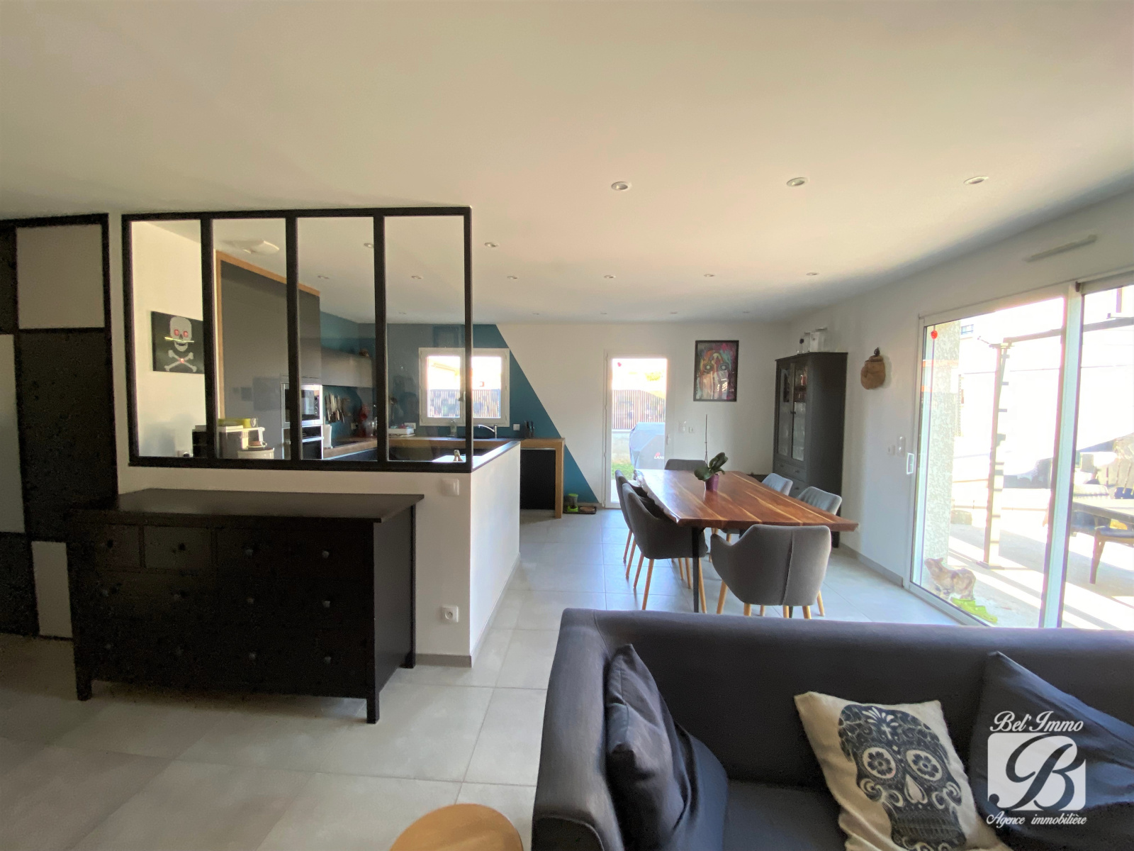 Cette maison récente de 2017 est composée d'une entrée, d'un séjour/salon lumineux de 35 m² environ avec accès à la terrasse. Une cuisine fonctionnelle, équipée SCHMIDT et ouverte avec une jolie verrière, 3 chambres, une salle de bains avec baignoire et douche, un WC, une buanderie et un garage.