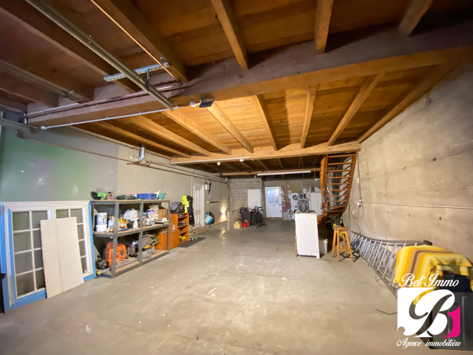 Le grand atout de ce bien atypique est le garage de 90 m², attenant à la maison, surplombé d'un étage de la même surface, avec son entrée indépendante par le biais d'une porte sectionnelle.
