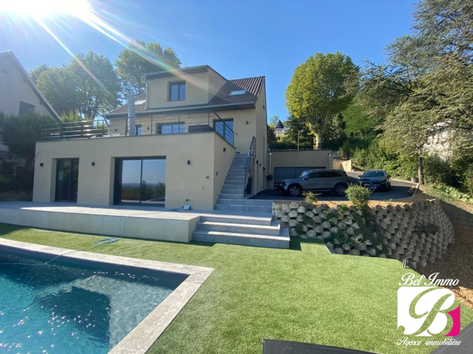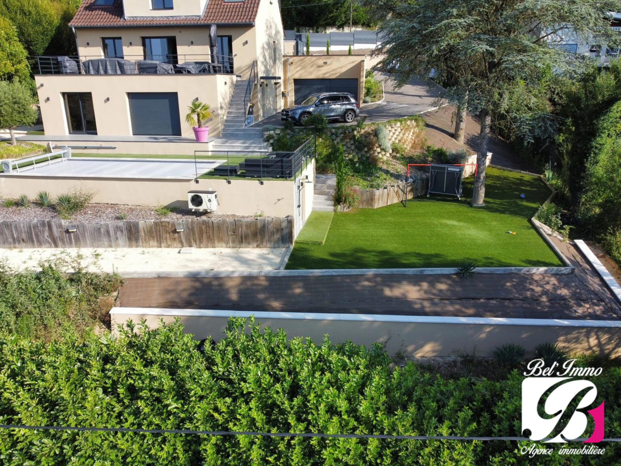 Cette belle demeure est située dans un environnement privilégié : elle est agrémentée d'un ensemble paysagé, d'une très belle terrasse de 34 m², d'une piscine chauffée ainsi que d'un terrain de pétanque, le tout sur une parcelle close de 1285 m².