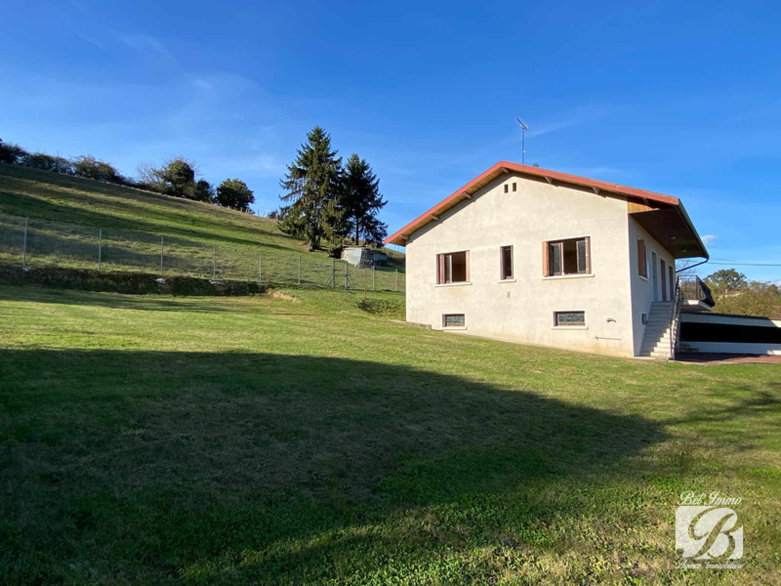 Bourg Saint Christophe, secteur très calme, maison lumineuse de 118m² environ sur sous-sol complet. Au 1er étage: un salon/séjour de 30m² donnant sur un balcon/terrasse, cuisine équipée, salle de bains, wc, grand dégagement, 3 chambres. Au sous-sol: double garage, cave, atelier, chaufferie, salle de douche et wc. Parcelle de 4 669m² environ. 462 000€ frais d'agence inclus. Honoraires à la charge du vendeur. Visite virtuelle sur demande