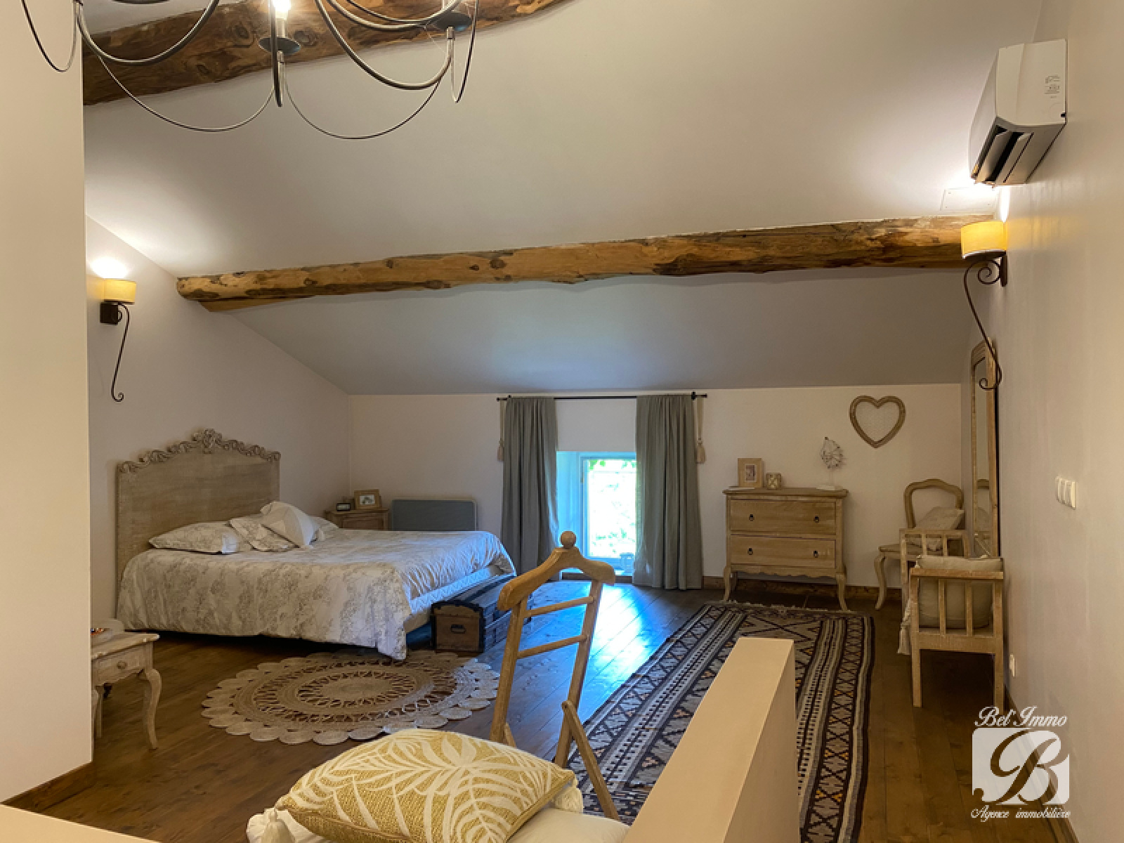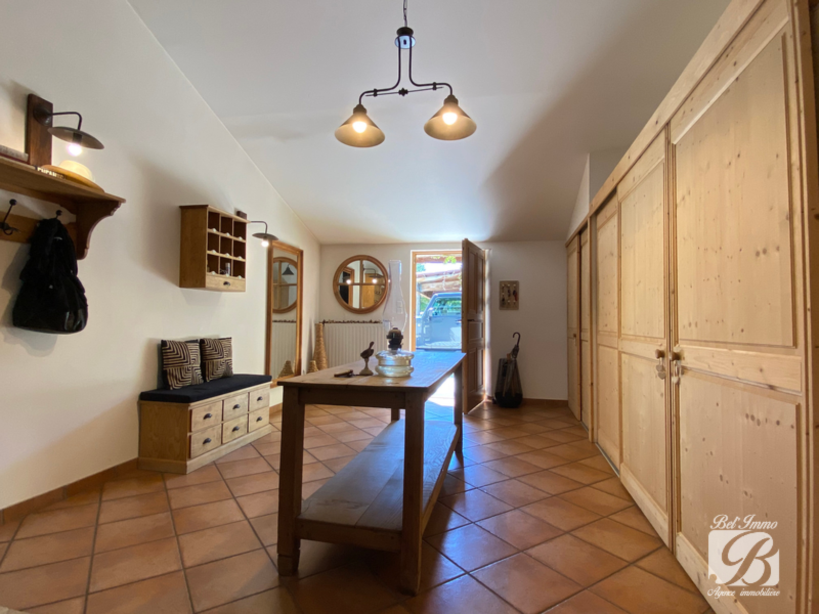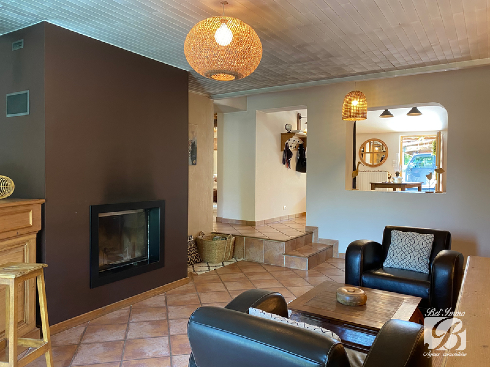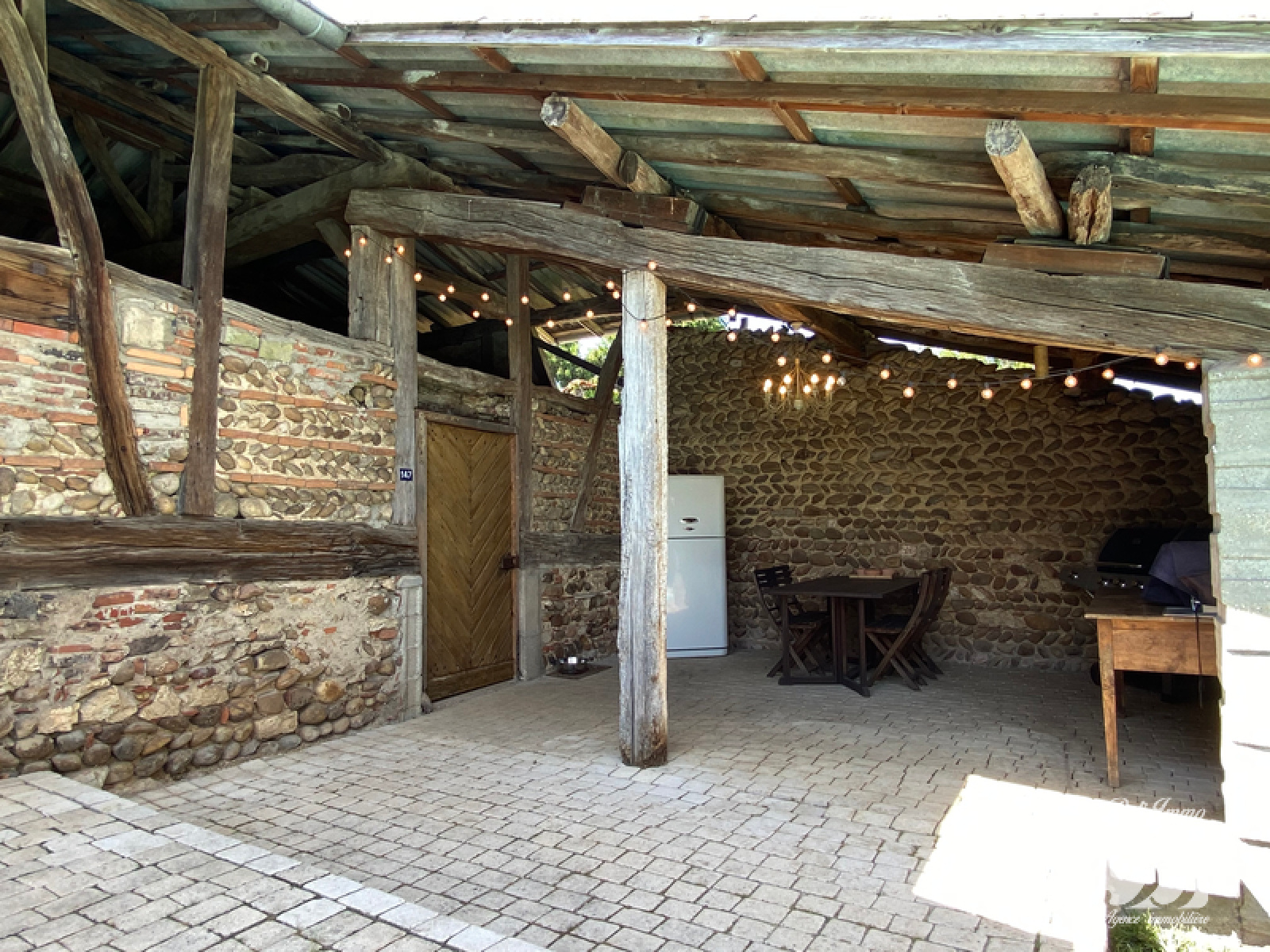 Aux alentours d'Ambérieu en bugey, maison atypique avec beaucoup de charme composée au RDC d'une grande entrée avec de nombreux placards muraux, un salon avec insert de 25m2, un grand salon/séjour de 33m2, une cuisine meublée donnant sur la terrasse, une salle de douche, un wc, une buanderie/chaufferie de 19m2 avec accès au combles aménageables. Au 1er étage, un pallier desservant deux belles chambres de 29m2 et 16m2 environ, une charmante salle de douche et un wc. Nichées sous les toits une très belle suite parentale avec dressing de 43m2 environ au sol + une 4ème chambre de 20m2 au sol. Dans un cadre bucolique vous trouverez une spacieuse terrasse pavée en partie abritée, plongeant sur la piscine chauffée. Cette parcelle paysagée de 1889m2 entièrement close et sans vis à vis est agrémentée d'une dépendance attenante de 40m2 à réhabiliter avec son entrée indépendante. D'un grand atelier de 63m2 au sol environ sur 2 niveaux, un abris bois de 40m2 environ, un local technique et d'anciennes loges à cochon. Un carport 3 voitures vient compléter ce bien. Propriété avec de très belles prestations et aménagée avec beaucoup de goût.