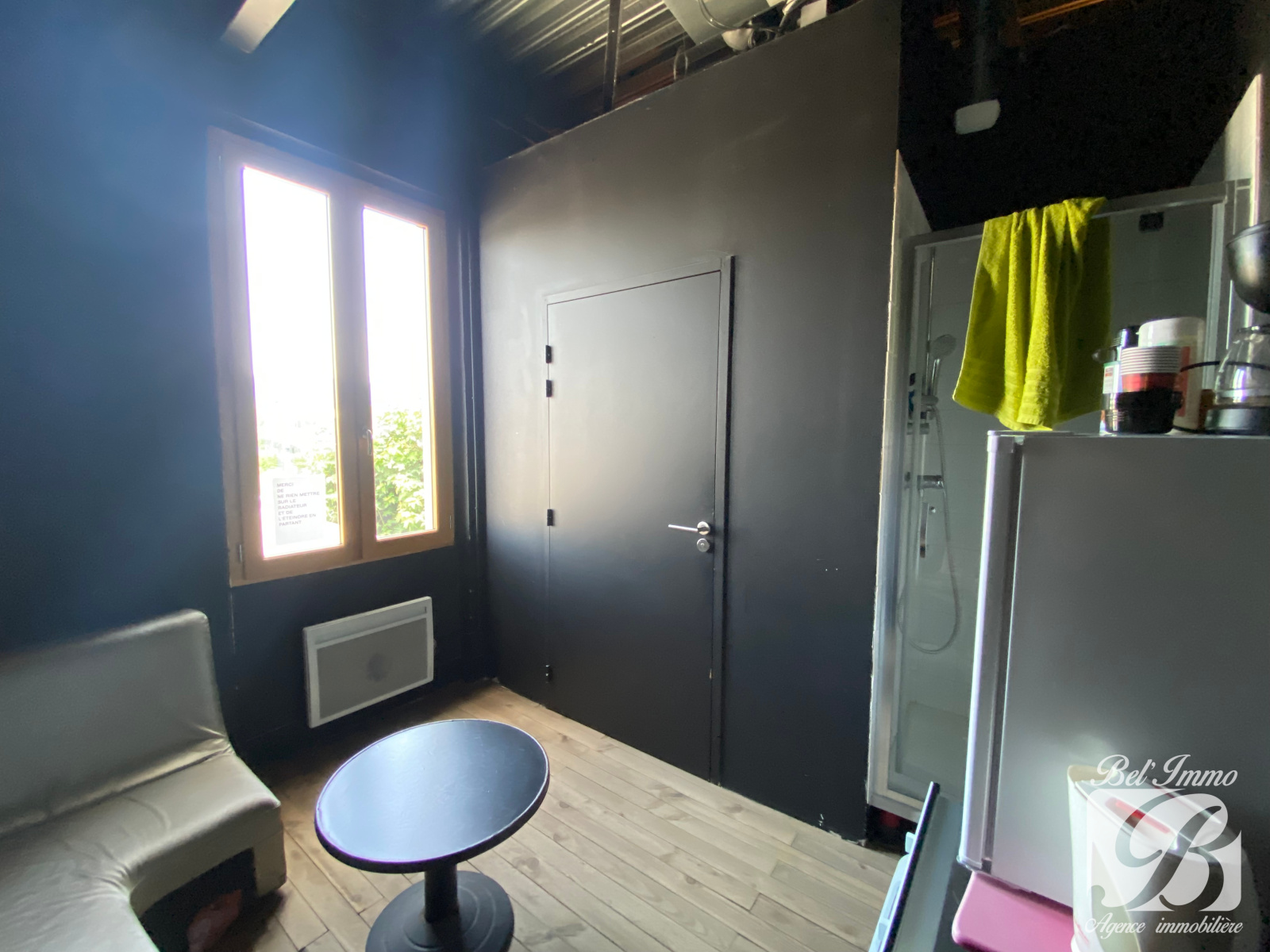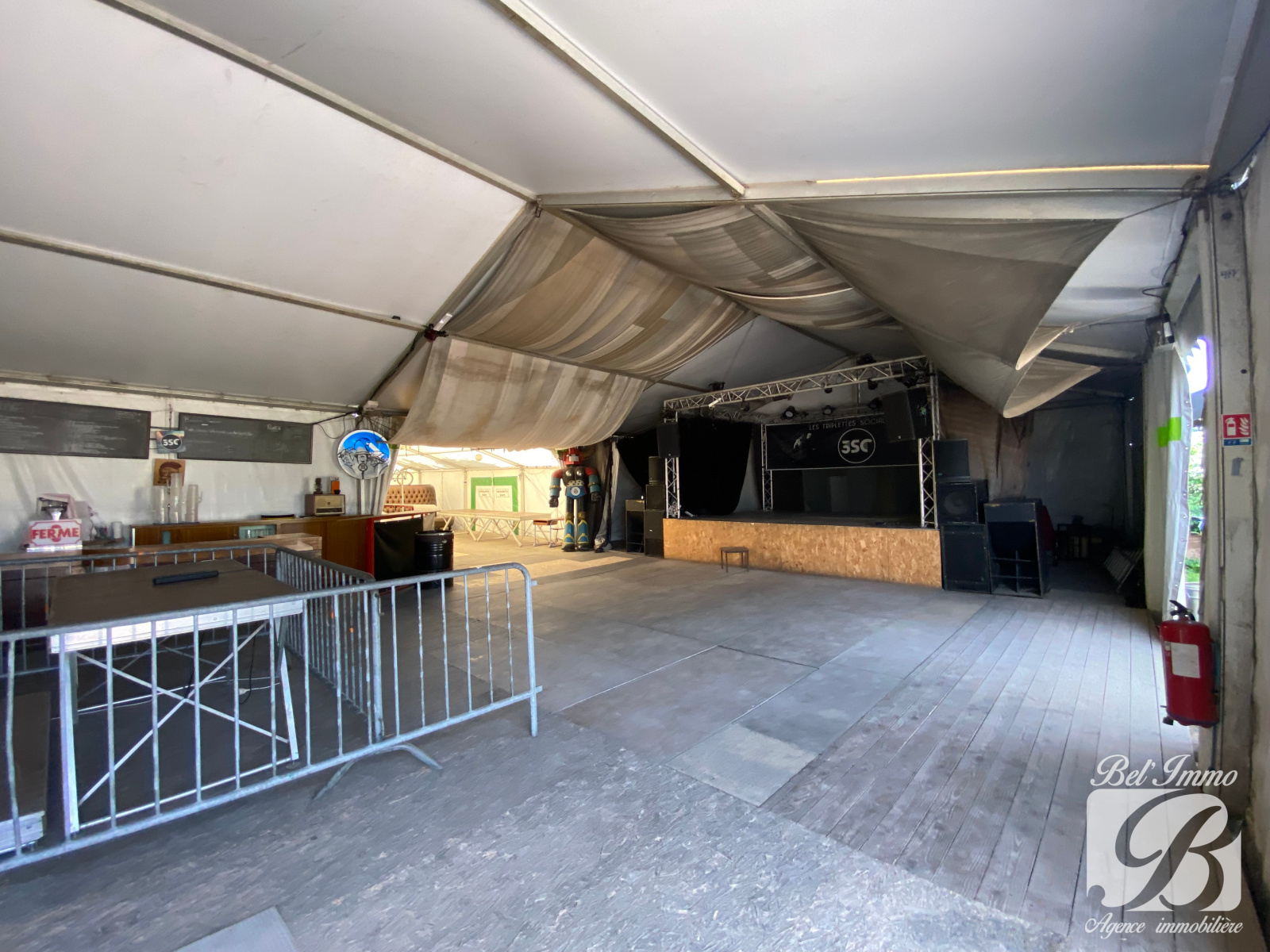 A l'étage, vous trouverez une autre salle qui surplombe la salle principale, une loge avec douche et wc, et un bureau.