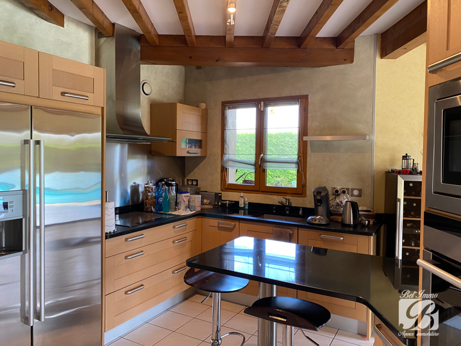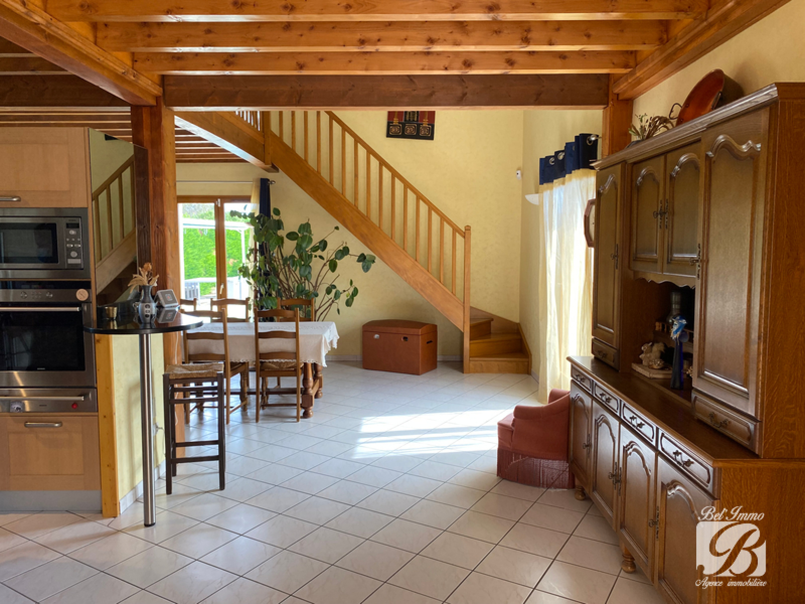 Jolie villa, au calme, de 130m2 carrez hab environ sur 1/2 sous sol. Elle se compose en RDC d'un hall d'entrée, d'une belle pièce de vie traversante et lumineuse ouverte sur une cuisine équipée, donnant accès à la terrasse couverte. Une mezzanine de 36m2 au sol surplombe le séjour et comprend un espace détente, un coin bureau et nichée sous les toits une petite chambre mansardée avec sa salle de douche et son wc. Pour accéder à l'espace nuit vous devrez franchir quelques marches qui vous amènerons à un pallier desservant 3 chambres et une salle de bains de presque 6m2 à rafraîchir équipée d'une douche et d'une baignoire, ainsi qu'un wc. Le sous sol est disposé d'une buanderie, un cellier, une partie local technique piscine et d'un garage de 23m2. Un 2ème garage de 26m2 avec mezzanine de rangement vient compléter ce bien. Très belle parcelle arborée et entièrement close de 1089m2, agrémentée d'une piscine enterrée. 458 000€ frais d'agence inclus. Honoraires à la charge du vendeur.